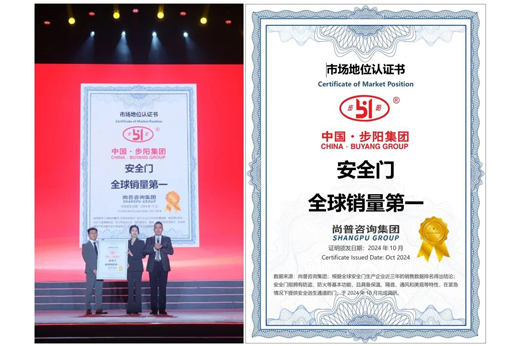 市場地位認(rèn)證 | 步陽安全門 全球銷量第一