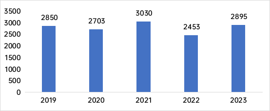 新建住宅推動(dòng)了安全門需求。受房地產(chǎn)市場(chǎng)下滑影響,安全門需求和市場(chǎng)規(guī)模波動(dòng)。2021年需求量為3030萬樘,2022年降至2453萬樘,市場(chǎng)規(guī)模為488億元,下降約15%。然而,政府刺激政策和市場(chǎng)調(diào)整帶動(dòng)2023年需求回升至2895萬樘,市場(chǎng)規(guī)模增至558億元。消費(fèi)者對(duì)家居安全和智能化的關(guān)注,以及技術(shù)進(jìn)步,預(yù)計(jì)將推動(dòng)安全門市場(chǎng)長(zhǎng)期增長(zhǎng)。