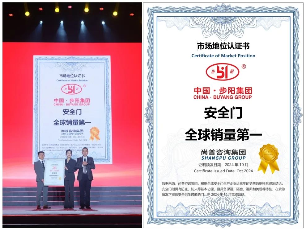 門是連接和分隔空間的重要元素,安全門則具備防盜、防火等安全特性,并提供保溫、隔音、通風(fēng)功能及緊急逃生通道。步陽集團(tuán)的安全門產(chǎn)品在全球市場(chǎng)調(diào)研中領(lǐng)先,2024年10月步陽集團(tuán)獲得尚普咨詢集團(tuán)頒發(fā)的“步陽安全門全球銷量第一”的市場(chǎng)地位認(rèn)證,這既是對(duì)其市場(chǎng)表現(xiàn)的認(rèn)可,也預(yù)示著對(duì)其未來發(fā)展的期待。