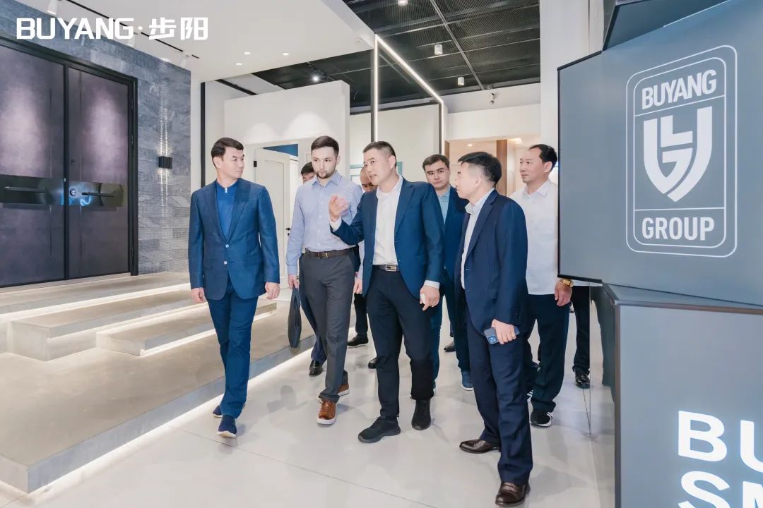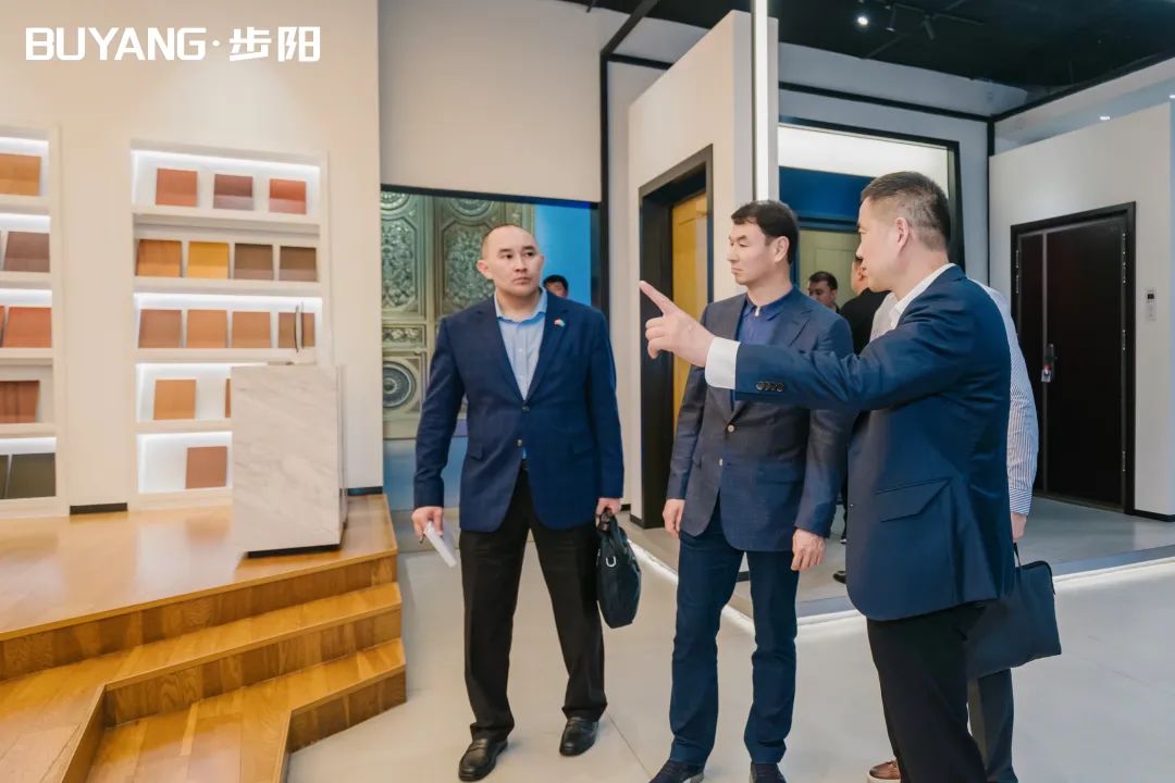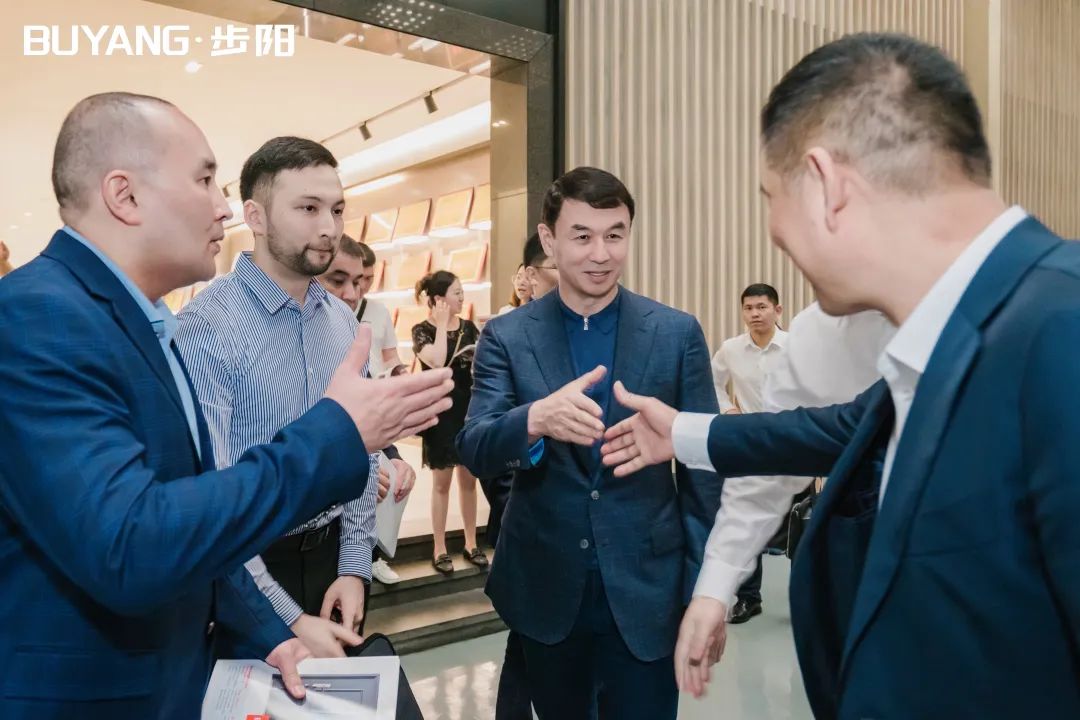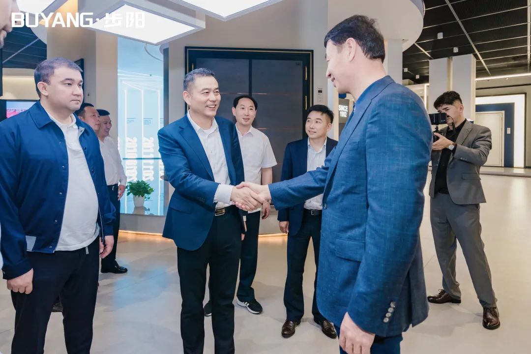 2023年5月5日上午,哈薩克斯坦圖爾克斯坦州州長達(dá)爾罕?薩特巴勒德率團(tuán)赴永康步陽集團(tuán)開展友好訪問和經(jīng)貿(mào)洽談,由永康市委副書記陳建勛陪同。