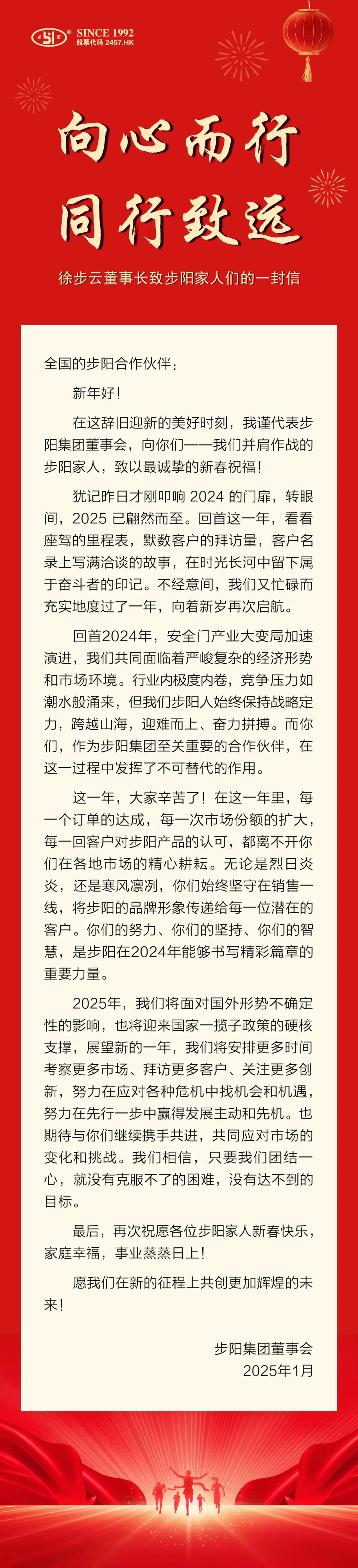 “向心而行 同行致遠(yuǎn)” 徐步云董事長(zhǎng)致步陽家人們的一封信