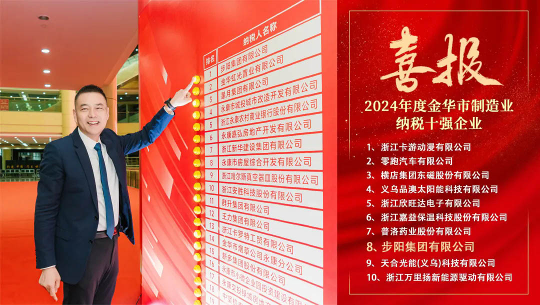 2月12日,永康市工業(yè)大會(huì)暨納稅雙百企業(yè)表彰大會(huì)隆重召開。此次大會(huì)旨在總結(jié)2024年永康市工業(yè)經(jīng)濟(jì)發(fā)展成果,并對(duì)過去一年中表現(xiàn)突出的企業(yè)進(jìn)行表彰。步陽集團(tuán)有限公司憑借卓越的經(jīng)營(yíng)業(yè)績(jī)和對(duì)社會(huì)的杰出貢獻(xiàn),連續(xù)六年蟬聯(lián)永康市納稅冠軍,并在金華市制造業(yè)納稅十強(qiáng)企業(yè)中位列第八名。