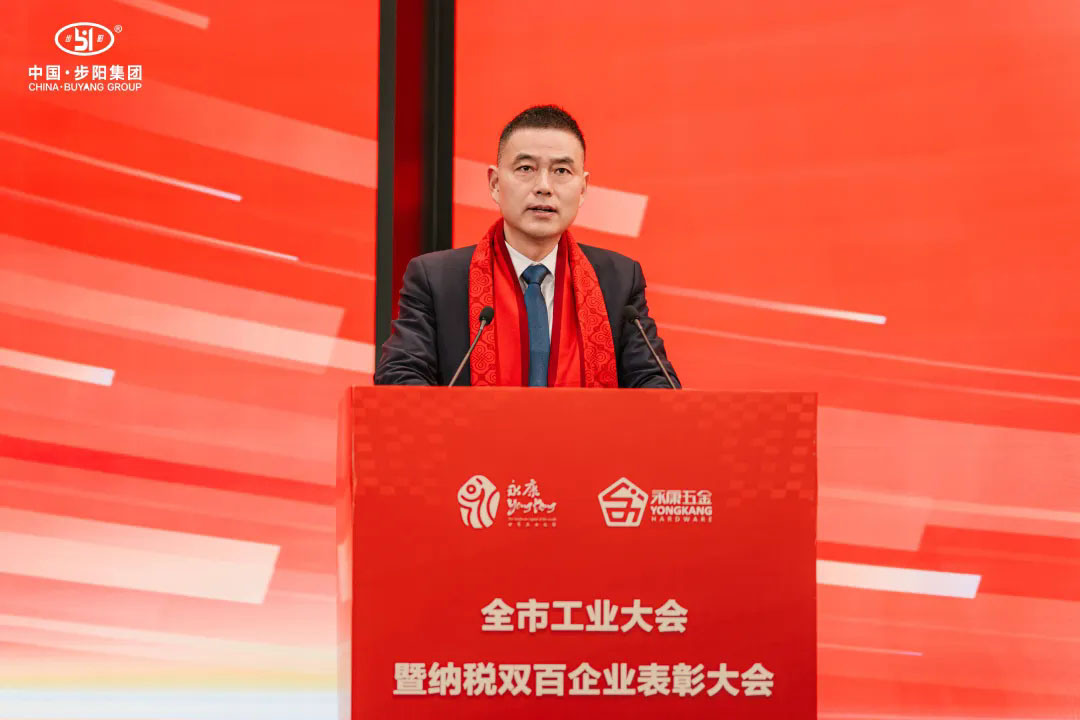 在大會(huì)的頒獎(jiǎng)環(huán)節(jié),永康市市委書記胡勇春親自為徐步云董事長(zhǎng)授予了“納稅雙百第一名”獎(jiǎng)牌,對(duì)步陽集團(tuán)為永康市經(jīng)濟(jì)發(fā)展做出的杰出貢獻(xiàn)給予了高度評(píng)價(jià)。這一榮譽(yù)不僅是對(duì)步陽集團(tuán)過去一年努力付出的肯定,更是對(duì)未來發(fā)展的激勵(lì)和鞭策。