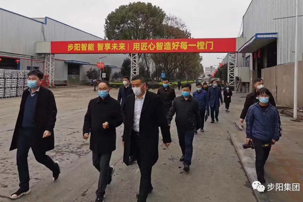 3月4日,金華市委副書記陳玲玲到步陽開展“三服務”活動時講到:步陽是個大企業(yè),復工走在全市前面,很不容易,步陽為抗擊疫情主動捐款幾百萬,是一個有責任有擔當?shù)膼坌钠髽I(yè)!看了你們的科技進步,相信步陽在永康市委市政府的關心下,會渡過眼前難關,當好行業(yè)排頭兵!金華市委成員、永康市委書記金政等領導、集團董事長徐步云等陪同調研考察!