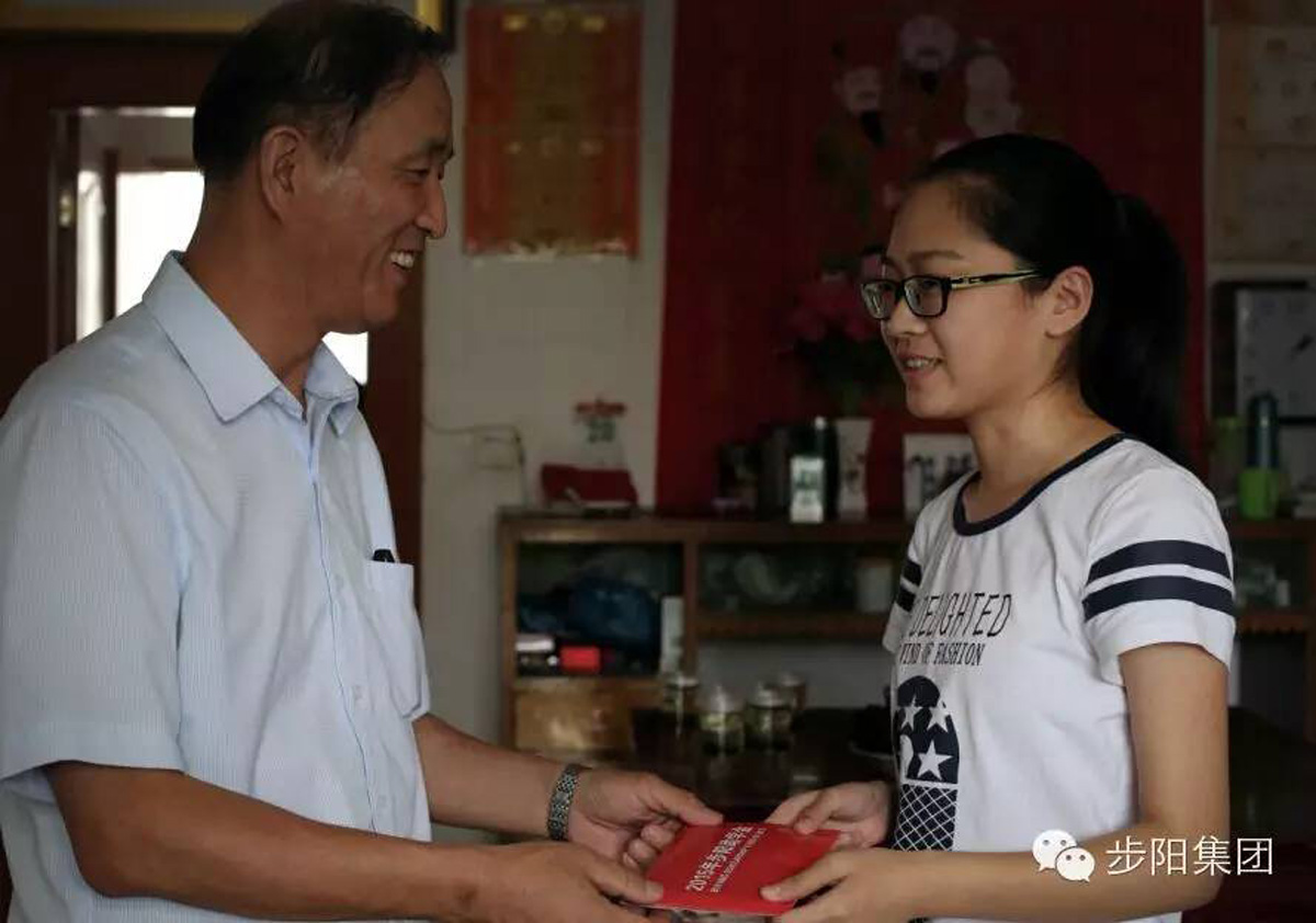 8月30日,“步陽千萬公益基金”助學(xué)基金會(huì)聯(lián)合金華晚報(bào)、永康日?qǐng)?bào)開展2015年圓夢(mèng)大學(xué)行動(dòng),在金華市慈善總會(huì)、永康市慈善總會(huì)等部門的支持下,行動(dòng)在全市范圍內(nèi)尋訪到了40名品學(xué)兼優(yōu)的貧寒學(xué)子,這些家庭大多因病或因?yàn)?zāi)致貧,但孩子成績(jī)優(yōu)異,其中有兩名學(xué)子還被浙江大學(xué)錄取。集團(tuán)行政副總程明松為每人送上了5000元的助學(xué)金。