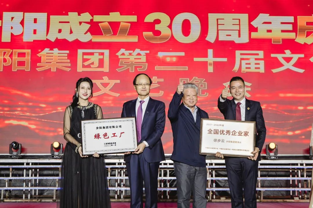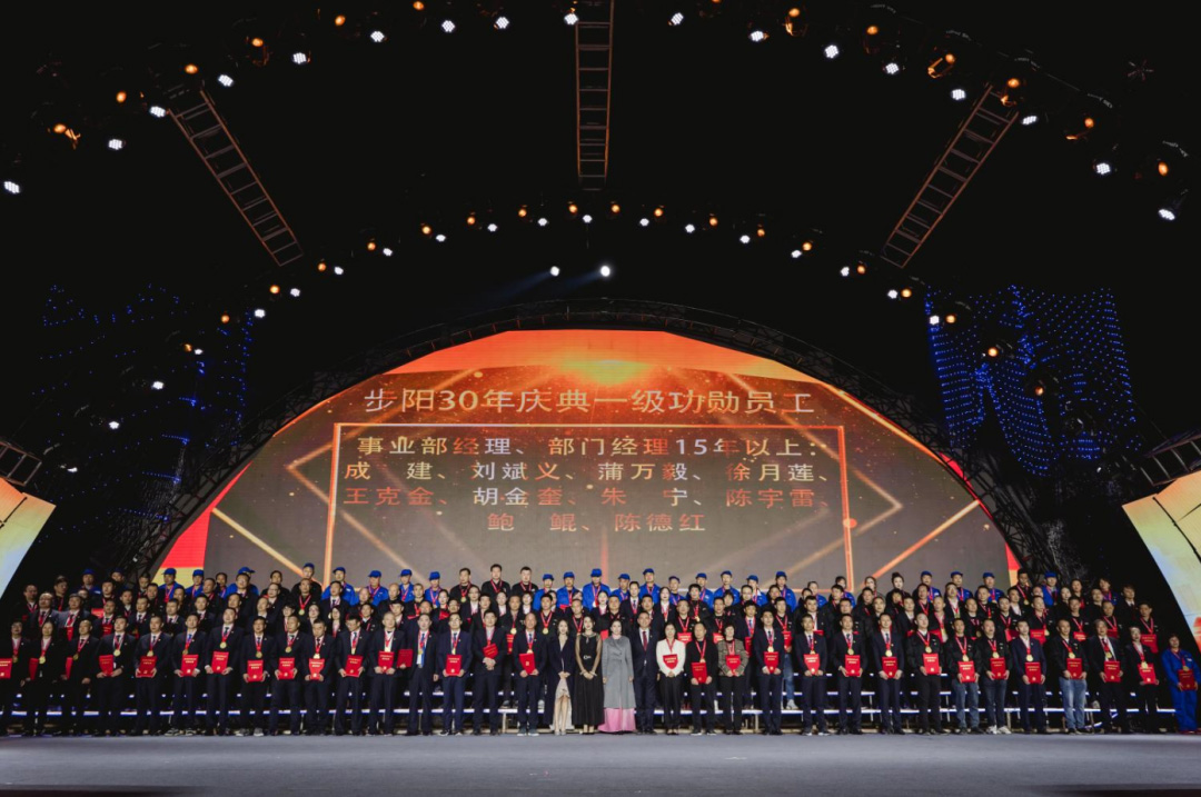 晚會以大合唱《步陽員工之歌》拉開帷幕,徐董事長、陳副董事長、徐總經(jīng)理現(xiàn)場對步陽30周年功勛人物進行頒獎,特別邀請了張韶涵、李玉剛、韓磊、七叔等明星獻唱,將現(xiàn)場氣氛推至高潮,最后在《星辰大海》合唱中圓滿落下帷幕。晚會現(xiàn)場也傳來了喜訊,步陽集團獲評“國家級綠色工廠”,徐步云董事長獲評“全國優(yōu)秀企業(yè)家”榮譽稱號。