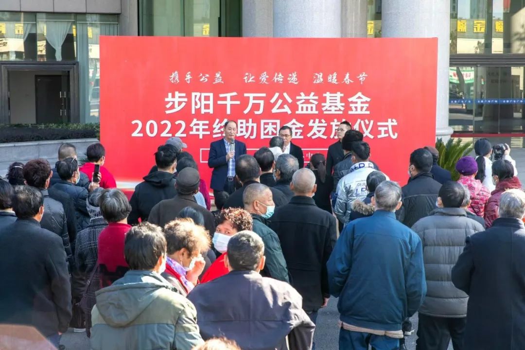 步陽千萬公益基金成立于2005年,由步陽集團和市融媒體中心共同發(fā)起的純公益性項目,2022年從2000萬元增資到5000萬元,年終助困和愛心助學是每年雷打不動的兩個大型公益活動。通過18年的培育,步陽千萬公益基金已經(jīng)成為麗州大地匯聚廣大社會愛心力量的、具有良好社會公信力的公益平臺,18年累計幫助3400個家庭,700多位學子。下一步,步陽集團將秉承“企業(yè)發(fā)展,回報社會”的宗旨,步陽千萬公益基金也將加強獎學助學、扶貧助困、共富共建的支持力度,勇?lián)鐣熑巍?