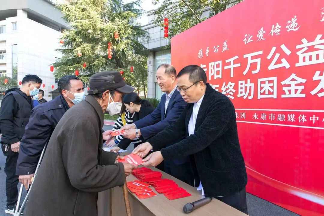 1月12日上午,“步陽千萬公益基金”2022年終助困金發(fā)放儀式在永康市融媒體中心舉行,為200來戶相對困難家庭每戶送上1000元的新春助困金。
